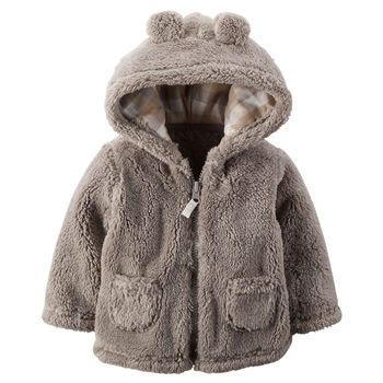 前ファスナー。 フードにクマさんの耳付き。小さなポケット2つ付き。 かわいい~!! 思わず笑みがこぼれてしまうような愛らしいベビー服です。 柔らかくて軽いボア素材のベビーパーカーです。 フードの内側にはチェック柄の綿素材が張ってあり、 かぶった時にも気持ちよくできています。 温かみのある肌触りでだっこしているママ・パパまでホカホカ。♪ お部屋着に、お外着に、アウターとして・・ 重宝間違い無しのカーターズ人気の1枚です。 出産祝いにもお勧めです。 画像よりやや薄めのブラウン(茶色)になります。 ☆素材:ポリエステル100%(フリースボア素材) ☆色:ライトブラウン