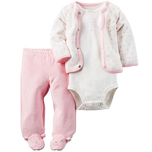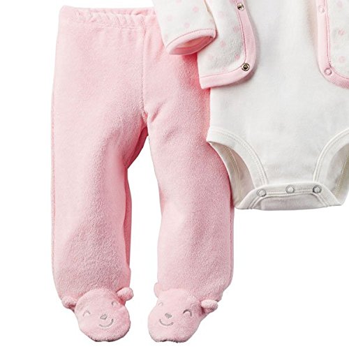 カーターズ Carter's 女の子用白xピンクドットクマさん気分になれちゃうふわふわカーディガン上下3点セット (3months(55-61cm)) [並行輸入品]