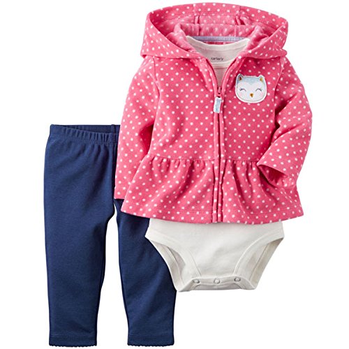 カーターズ(Carter's)女の子用ピンクドットふくろうアップリケフード付きフリースジャケットお出かけ用上下3点セット (9months(67-72cm)) [並行輸入品]
