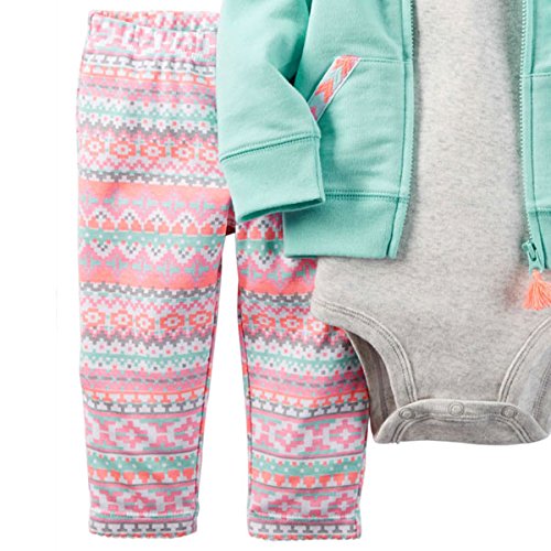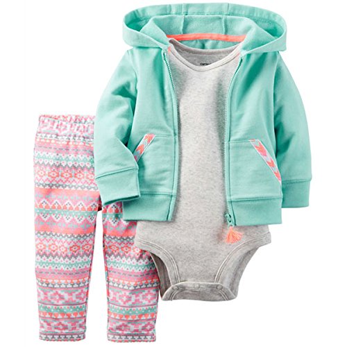 カーターズ(Carter's)女の子用ミントグリーンフード付きジャケットxネイティブ柄コーデパンツお出かけ用上下3点セット (18months(78-83cm)) [並行輸入品]