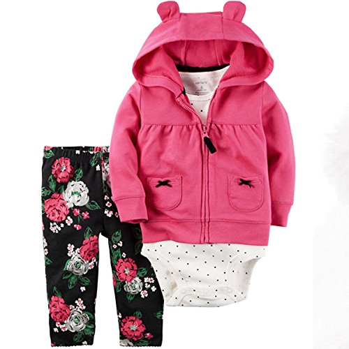 カーターズ(Carter's)女の子用赤紫3D立体耳フード付きフリースジャケットお出かけ用上下3点セット (12months(72-78cm)) [並行輸入品]
