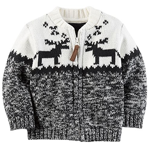 カーターズ carter's 男の子用黒x白トナカイさん柄フェアアイルジップアップカーディガン (18months(78-83cm)) [並行輸入品]