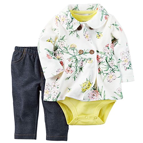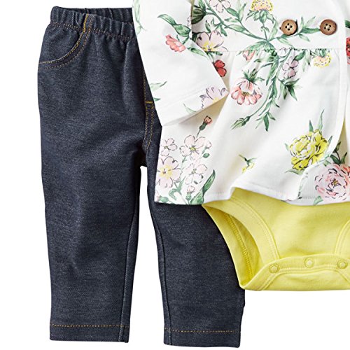 カーターズ(Carter's)女の子用白ボタニカルボタンジャケットxデニム風コーデパンツお出かけ用上下3点セット (9months(67-72cm)) [並行輸入品]