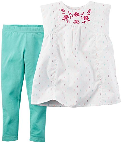 カーターズ Carter's トップス キッズ子供服 ノースリーブ 刺繍付き 綿100% &レギンス 綿95% ポリウレタン5% 2点セット 2-Piece Top & Legging Set 2T (88-93 cm)