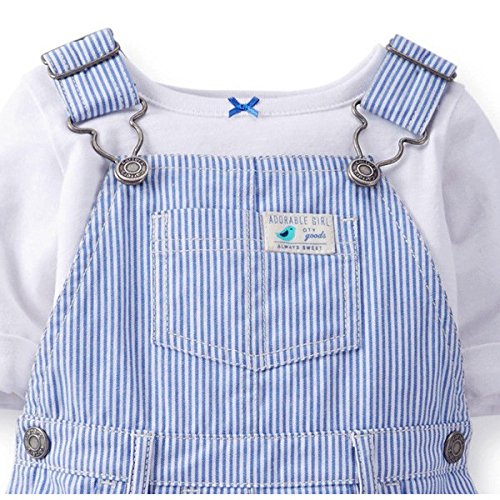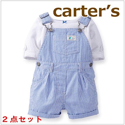 《オーバーオール2点セットの詳細》 【セット内容】5分丈の白のTシャツに水色ボーダーオーバーオールの2点セット●素材:コットン100% ●サイズ: 《 Tシャツ 》 ・9ヶ月(75cm)バスト 59cm 着丈 28cm ・12ヶ月(80cm)バスト 60cm 着丈 30cm ・18ヶ月(85cm)バスト 62cm 着丈 34cm ・24ヶ月(90cm)バスト 65cm 着丈 36cm 《 オーバーオール 》 ・9ヶ月 ウエスト50cm 肩からの裾までの長さ 48cm ・12ヶ月 ウエスト51cm 肩からの裾までの長さ 49cm ・18ヶ月 ウエスト54cm 肩からの裾までの長さ 50cm ・24ヶ月 ウエスト58cm 肩からの裾までの長さ 53cm ◎オーバーオールのショルダーは長さ調節出来、ウエストにもスナップが付いているので脱ぎ着が楽! 5分丈の白のTシャツは薄手なので真夏でも大丈夫。日焼け防止にもなり1枚あると便利です。折って着せれば長い間着せられ便利!また、スナップボタンはカーターズの刻印が入って豪華!すべてコットン100%なので汗を吸いとっても気持ちいいですよ!