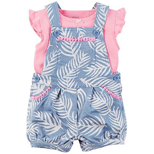 カーターズ carter's 女の子用水色リーフ柄ショートオールx蛍光ピンクTシャツお出かけ用上下2点セット (6months(61-67cm)) [並行輸入品]