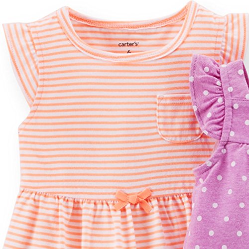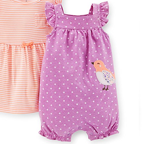カーターズ(Carter's)2015年春夏 女の子用ラベンダー水玉小鳥さんロンパース&ネオンオレンジボーダーリボン付きワンピース2枚セット[並行輸入品] (6months(61cm-67cm))