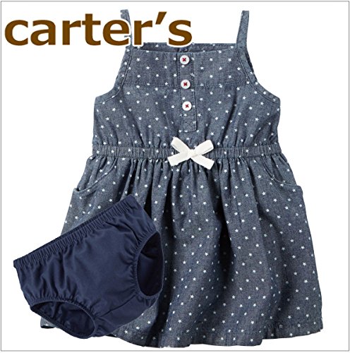 《ワンピース2点セットの詳細》 コットン100% 【セット内容】ワンピース+ブルマ★カーターズ正規品 柔らかく薄いソフトデニム生地に☆柄が可愛いワンピースとブルー無地のブルマの2点セットの登場です!生地はコットン100%で肌に優しく、ウエスト切り替えがアクセント。ポケットが両サイドに1つづつ。後ろにスナップが3つ付いてお着替えラクチン!ノースリーブのワンピースだけど、色的にジャンパースカートとしても着れるので長い間着れ経済的!またコットン100%無地のブルマが付いているのでオムツが見えず、お出掛けが楽しくなります♪