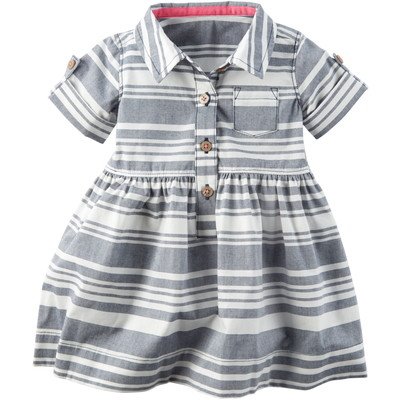 Carter's(カーターズ) ストライプポプリンドレス グレー ワンピース 6ヶ月【並行輸入】