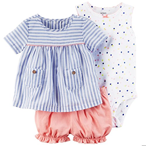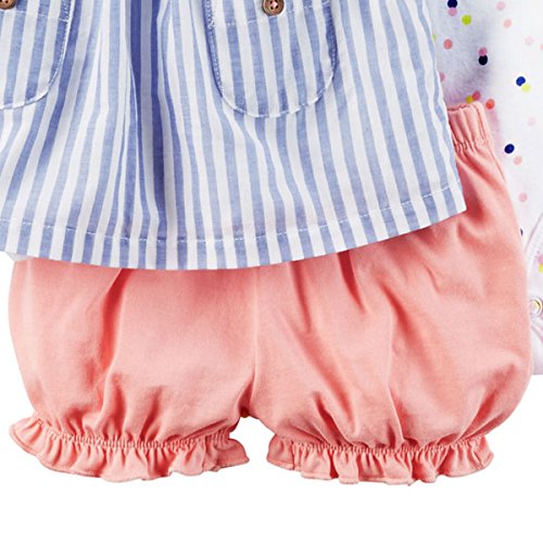 カーターズ Carter's 女の子用ブルーストライプ半袖チュニック豪華上下3点セット (12months(72-78cm)) [並行輸入品]
