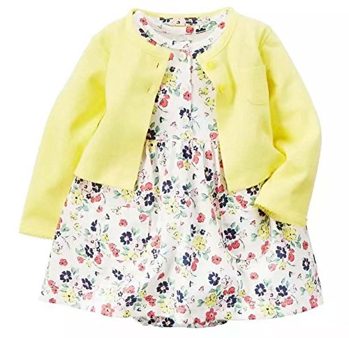 カーターズ Carter's カーディガン 半袖ロンパース ワンピース 2点セット イエロー&花 ベビー服 女の子(12months(72-78cm)) [並行輸入品]