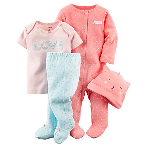 カーターズ Carter's ご出産祝いに ロンパース カバーオール Tシャツ パンツ 帽子 豪華4点 ギフトセット 女の子 春夏秋冬 4-Piece Take-Me-Home Set 9M (67-72cm)