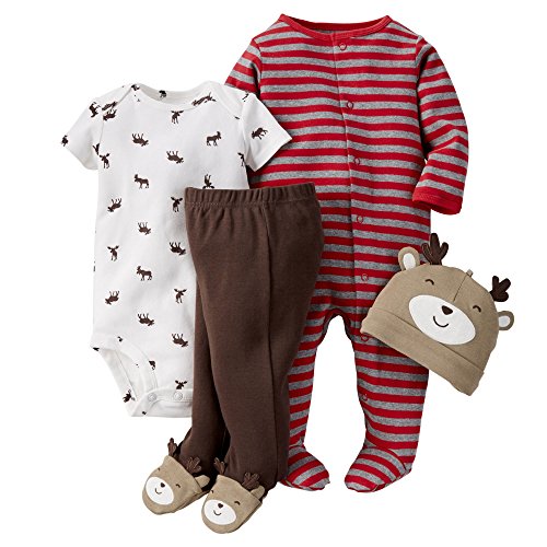 カーターズ Carter's ご出産祝いに ロンパース カバーオール 長袖 足つき ボディスーツ パンツ 足つき 帽子 豪華4点 ギフトセット 男の子 春夏秋冬 4-Piece Take-Me-Home Set NB (50-55cm) [並行輸入品]