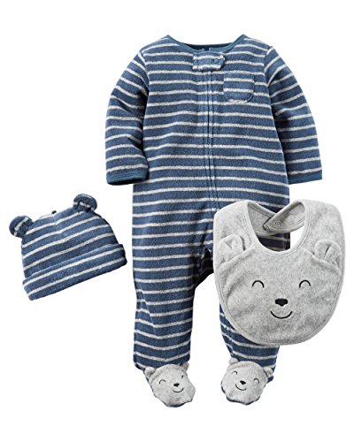 With built-in character footies, this soft terry sleep & play is his perfect around-the-clock outfit. Plus, this one includes a bib and a cap to keep him clean and warm!