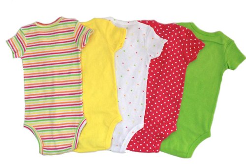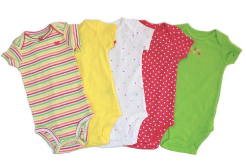 カーターズ【Carter's】(カーターズ ボディースーツ セット) 5枚組半袖ボディースーツ ☆カラフルボーダーハート×ピンクドット