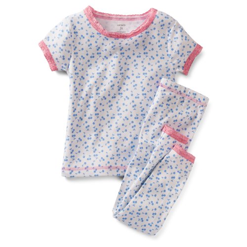 For child's safety, cotton pjs should always fit snugly. Cute allover cherry print makes these pjs so sweet for her bedtime.
