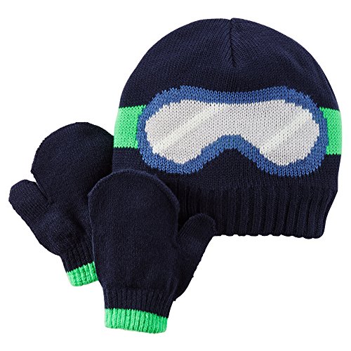 カーターズ Carter's 防寒 ニット 帽子 手袋 セット ゴーグル柄 アクリル95%、ポリウレタン5% 秋冬 Ski Goggle Hat & Mitten Set 12-24M (78-86cm) [並行輸入品]