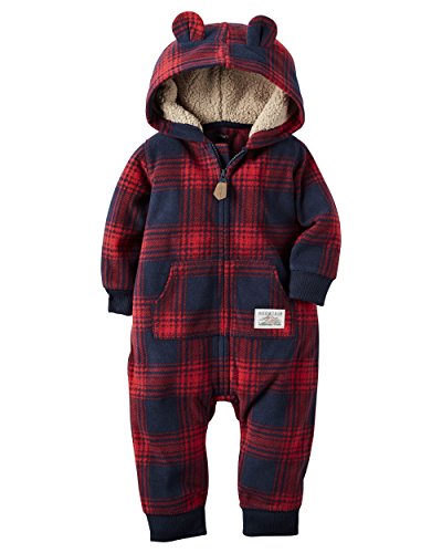 Super soft and cozy, this zip-up fleece jumpsuit keeps him warm from dusk to dawn. Ribbed cuffs, a kanga pocket and a hood with 3D ears complete this adorable look.