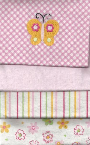 Carter's 4 Flannel Blanket Set For Baby Girl Pink Blankets embroidered Butterfly by Carter's