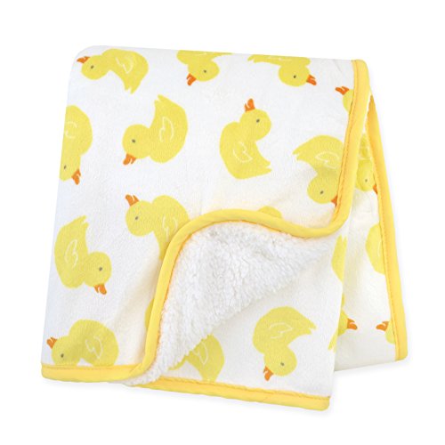 Plush blanket fabric is soft and warm against baby's skin;Detailed with classic yellow duck print;Large 30 x 40 plush blanket;Machine washable;Great newborn baby gift or security blanket for toddlers