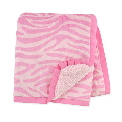 Plush blanket fabric is soft and warm against baby's skin;Detailed with pink zebra print and satin binding;Large 30 x 40 plush blanket;Machine washable;Great newborn baby gift or security blanket for toddlers
