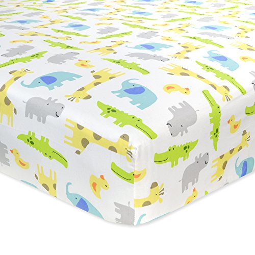 Carter's Cotton Fitted Crib Sheet, Critter/Green/Yellow/Grey/White