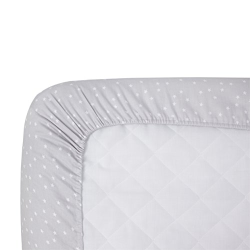 Fabrics are 100% Cotton Sateen;Print Grey Star - Light grey with sprinkling of tiny white stars;Fits a Standard Size Crib Mattress 28 x 52;Machine wash separately in cold water, gentle cycle. Use only non-chlorine bleach when needed. Tumble dry on low heat. Iron on low heat when needed. Do not dry clean.
