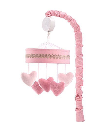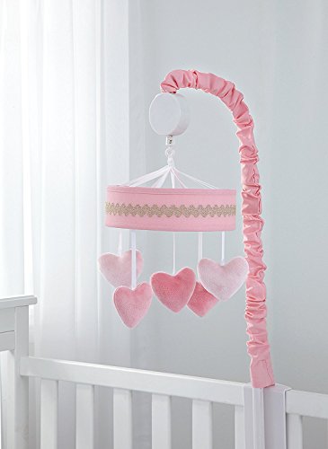 Carter's Hearts of Gold Musical Mobile - This musical mobile helps to soothe your little one to sleep, gently spins while playing Brahms Lullaby. Surround your baby with the sweet sounds of love with this adorable mobile featuring spinning pink hearts edged in gold embroidery. Coordinates with a full line of Carter's Hearts of Gold nursery bedding and decor.