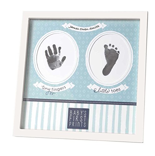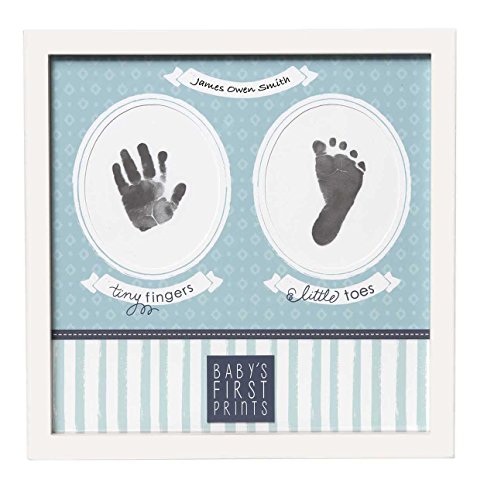 Wall or desktop frame features decorative mat with openings for baby's first hand and foot print;11 x 11-Inch frame in classic white;Space for personalization with baby's name; includes non-toxic washable ink pad;Arrives boxed and ready for gifting;C.R. Gibson has been preserving family memories for 140 years and no memory is as special as that of our children