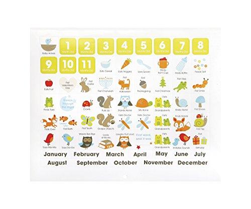 Baby's first year calendar is a convenient way to record important events and milestones of baby's first 12 months.;Open calendar is 11w x 18h;Calendar includes archival quality pages that are acid-free and lignin-free.;Coordinating die-cut stickers are included. These stickers are titled with important events that provide an easy way to record baby's milestones month by month.