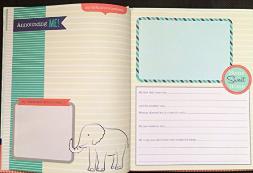Hold on to those special moments with this Baby Memories book decorated with elephants and stripes;Commemorate baby's milestones with themed pages;Record First 5 years with this fill-in book to record the events;The pages in this book are decorated with elephants, turtles, lions, alligators, zebras, other zoo animals and more;see pictures for details of some of the pages