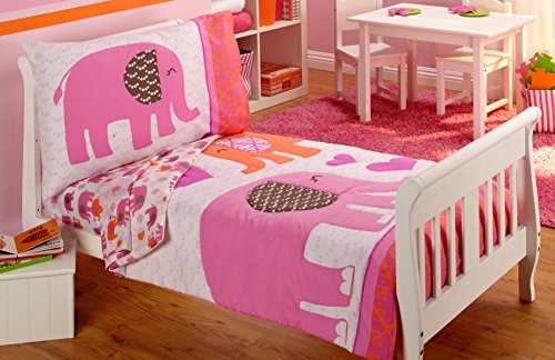 Carter's Elephant Walk Toddler Bed Set Includes: Quilted Bedspread, Fitted Bottom Sheet, Flat Top Sheet and Standard Size Pillowcase. Made of soft microfiber fabrics.