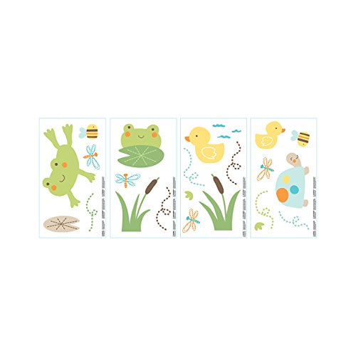 Carter's pond collection wall decals customize your nursery with 4 sheets of various-sized peel and stick decals including jumping and resting froggy, turtle, duckies, bumblebees, and more. Adhesive comes off easily and won't harm walls just peel and stick, then remove when you're ready. Coordinates with a full line of carter's pond collection nursery bedding and decor.