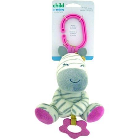 The Girl Zebra Chime and Chew toy, offered by Carter's and Kids Preferred, easily attaches to a stroller or crib with a convenient on-the-go clip. This pint-sized zebra is ideal for tiny hands with a big imagination and is complete with a fuchsia flower-shaped teething ring to soothe baby's gums. Watch baby's eyes light up when a new friend happily chimes with a gentle swish of the hand! Featuring dark gray stripes and pink accents, this pretty pal will make a great addition to any little one's toy collection.