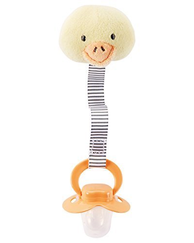 Brand New! Carter's Plush Duck Pacifier Clip! Ages 0+ years. Adorable yellow duck face with soft ribbon and plush covered clip to stay in place. Securely fasten clip to baby's clothing or blanket. Includes hook-n-loop fasteners and bright colored pacifier. New material, polyester fiber stuffing. A cute gift for a new arrival!