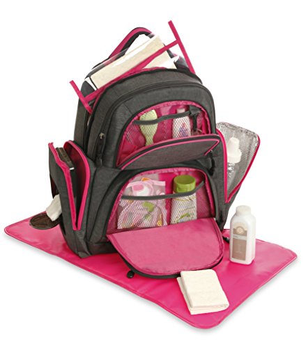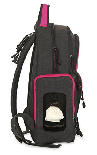 Spacious main and exterior pockets;Hard Wipes Case dispenser and changing pad;Adjustable Back straps and Top Handle;Insulated Bottle pocket;15w x 15 h x 5.5 d