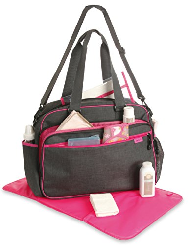 Spacious main compartment with multiple storage pockets;Exterior Organizer Pocket;Adjustable Shoulder Strap and Top Handles;Diaper Changer Pad;17 w x 12 h x 6 d