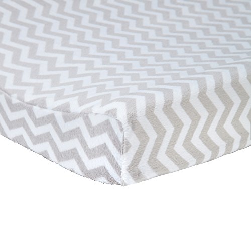 Fabrics are 100% Polyester Velboa;Smoke grey/white chevron;Fits a standard size contoured changing pad 32 x 16 x 4.;Machine wash separately in cold water, gentle cycle. Use only non-chlorine bleach when needed. Tumble dry on low heat. Do Not Iron. Do not dry clean.