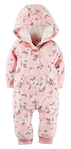 上の彼女は暖かさと着心地が冷える日とこの甘いカーターが特徴の、ジャンプスーツ快適なマイクロフリース生地の快適なフード、かわいい模様と容易なスナップの脚。補強脚、velboa-linedフード、可愛いプリントのKangaポケット、フロントボタンの前立て、リブ袖口にスナップします。