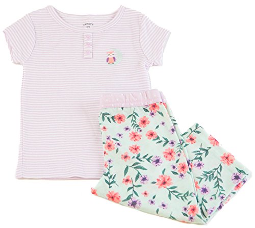 Cartersガールズストライプフクロウヘンリー& mixed-printパンツパジャマセットパープル カラー: パープル