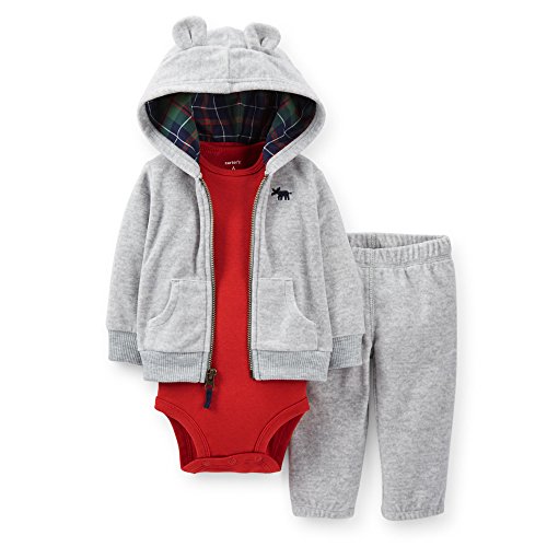 Carter's カーターズ ボーイズ トラックスーツ 3点セット くまちゃん パーカ ジャージ ボディスーツ ロンパース (18M, グレー)