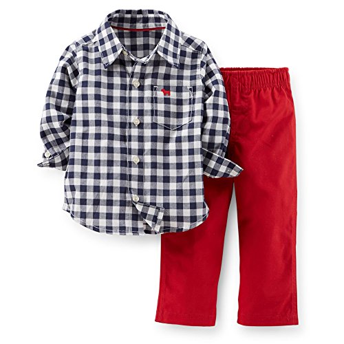 Carter's カーターズ ボーイズ シャツ&パンツ 2点セット セットアップ 上下セット シャツ ズボン パンツ (18M, レッド×ネイビー)