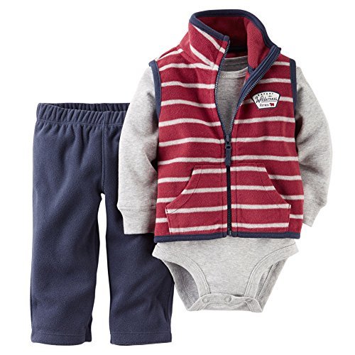 カーターズ Carter's ロンパース ボディスーツ 長袖 & フリース ベスト & パンツ 豪華3点セット 3-Piece Vest Set 3M (55-61cm)