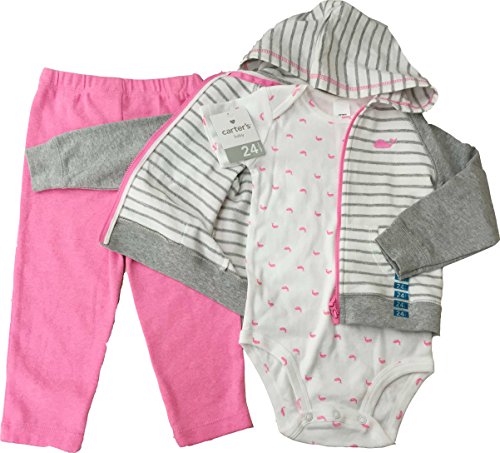 Carter's (カーターズ) ロンパース ボディースーツ フード付カーディガン パンツ 3点セット 綿100% 3-Piece Hooded Cardigan Set (24M)