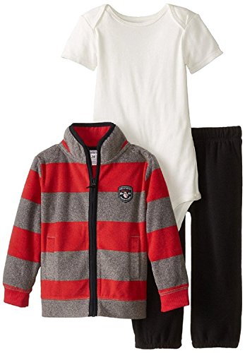 Carter's(カーターズ) ベビー フリースジャケット / ボディスーツ / ロングパンツ 3点セット (赤グレーボーダー) Baby 3-Piece Cardigan Bodysuit & Pants Set (12M(75))