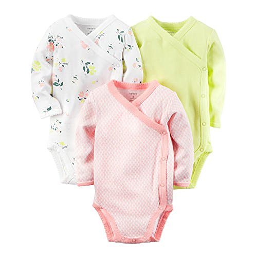 carter's カーターズ ボディスーツ 3枚 サイドスナップ セット ロンパース ベビー服 カバーオール 肌着 (9M(9ヶ月), フラワー/イエロー)