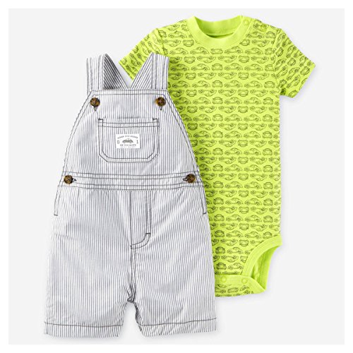 カーターズ オーバーオール&ロンパース 2点セット セットアップ 半袖 ボディスーツ 上下セット 男の子 ボーイズ パンツ carter's (12M(12ヶ月), くるま大好き) [並行輸入品]