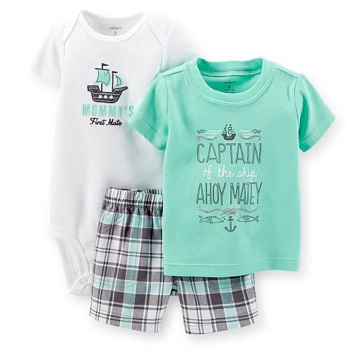 Carter's(カーターズ) ベビー ボーイズ 半袖Tシャツ / ボディスーツ / ハーフパンツ 3点セット (CAPTAIN OF THE SHIP) Baby boys' 3-Piece Set (3M(60)) (3M(50))