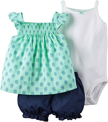 Carter's(カーターズ) ベビー ガールズ キャミソール / ボディスーツ / ハーフパンツ 3点セット (グリーン/ネイビー) Baby Girls' 3-Piece Set (3M(60))