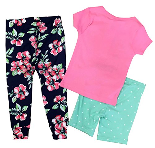 Carter's(カーターズ) ベビー ガールズ Tシャツ / ロングパンツ / ハーフパンツ 3点セット (ピンク/ハイビスカス) Baby Girls' 3-Piece Set (24M(90))